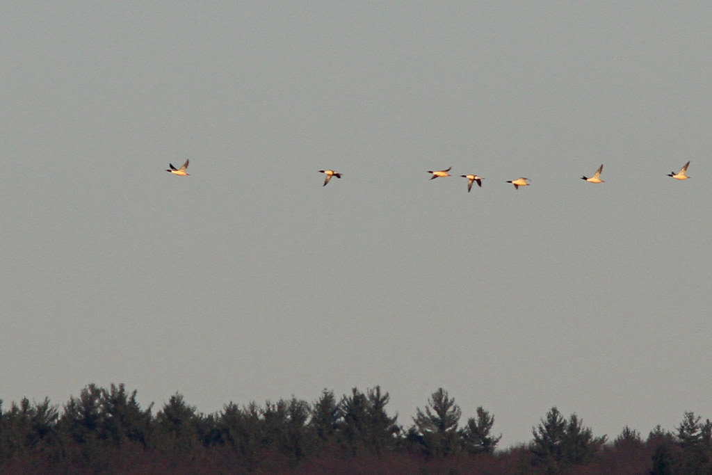 A rather brief stop at Beaver Lake in Ware produced the continuing Ruddy Duck, a single female Ring necked Duck, 24 Hooded Mergansers, ten Common Mergansers and three Mallards.